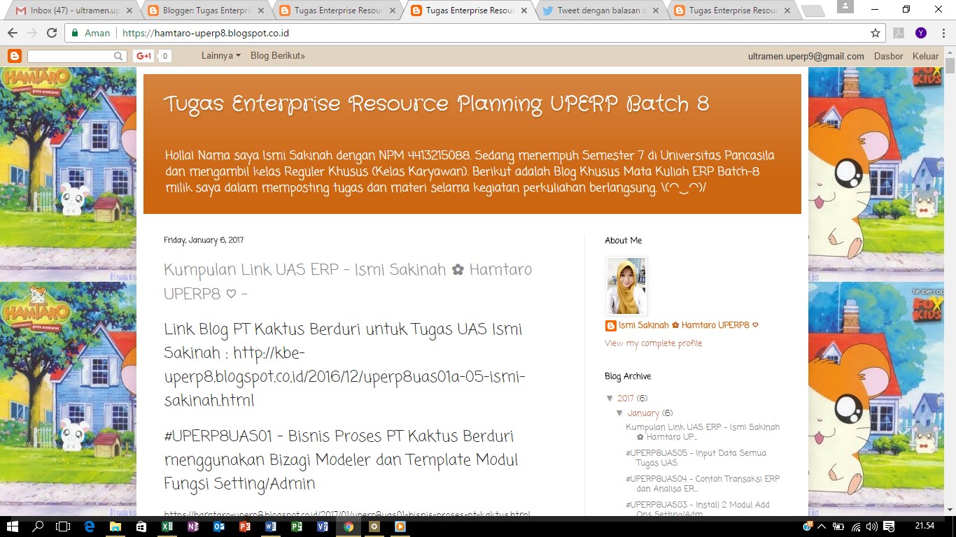 Kali ini saya akan membagikan hasil review saya pada bloghttps://hamtaro-uperp8.blogspot.co.id.Nama pemilik blog tersebutIsmi Sakinahdengan NPM 4413215088. Langsung saja, mari kita lihat hasil review dari blog tersebut: